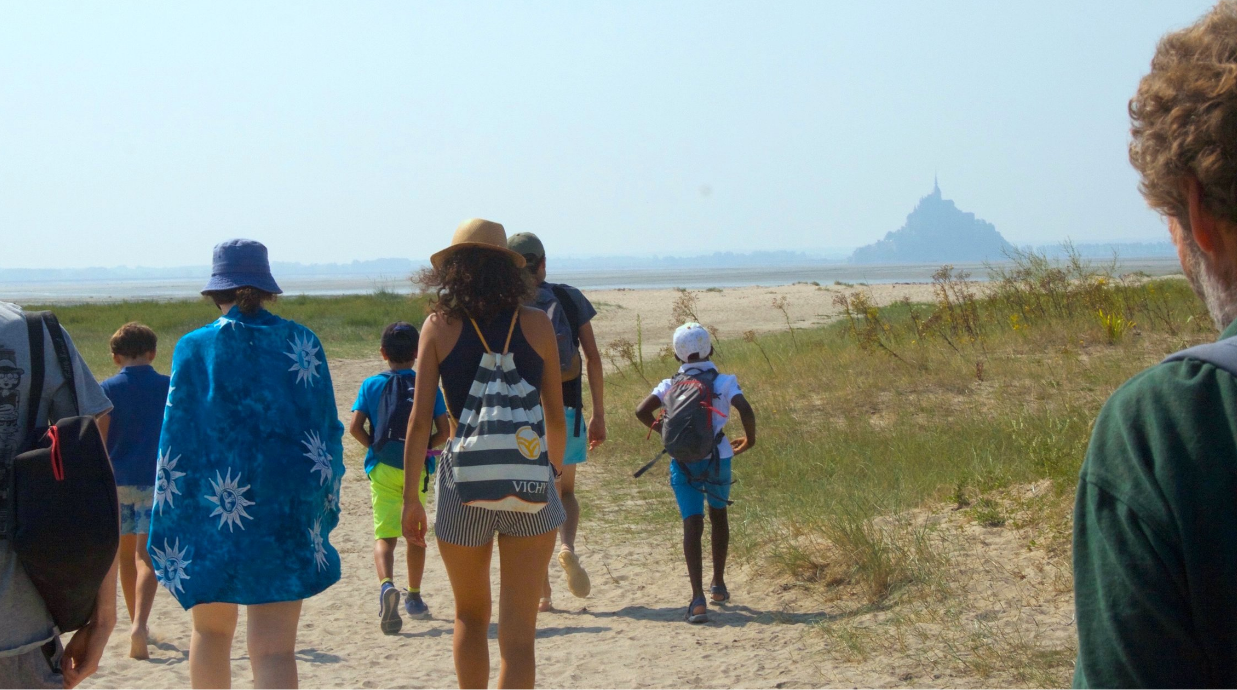⬆︎ Au départ départ du Bec d’Andaine. Le départ du Bec d’Andaine est souvant le plus adapté aux pèlerinages. Facilement accessible aux cars; toilettes dimensionnées; vasière; sables; îlot de Tombelaine (ancien siège de l’un des plus importants sanctuaires mariaux disparu aujourd’hui).